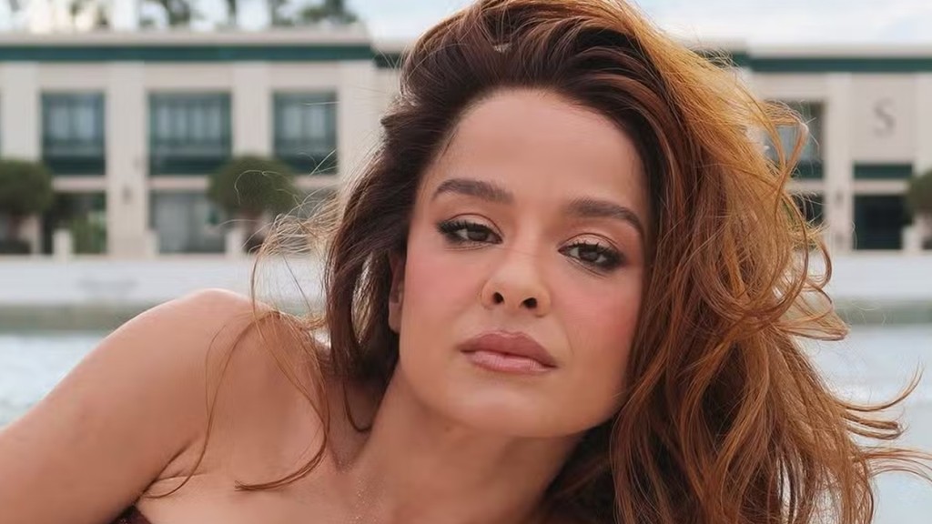 Maiara, de 37 anos, apareceu poderosa, nesta sexta-feira (24), nas redes sociais e encantou os seguidores. Usando um biquíni sem alça e com correntes nas