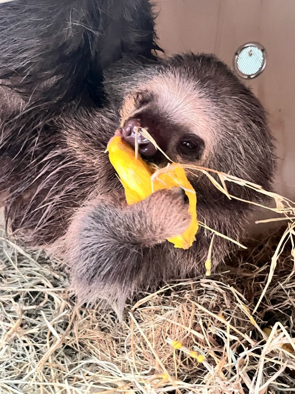 Após passar por processo de reabilitação, uma preguiça-real, resgatada no distrito de Deciolândia, no município de Diamantino (a 182 km de Cuiabá), chegou nesta quarta-feira