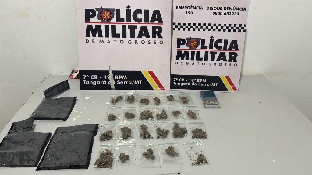 Policiais militares do 19º Batalhão prenderam um homem, de 28 anos, por tráfico ilícito de drogas, na noite desta terça-feira (6.1), em Tangará da Serra.