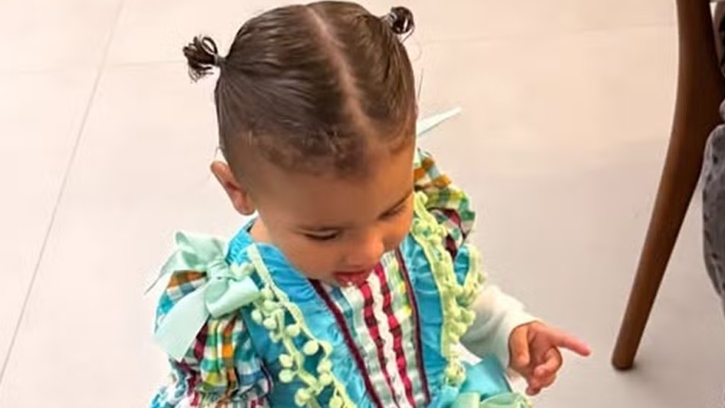 A Influenciadora compartilhou o clique da filha com Neymar fantasiada com um vestidinho temático enquanto tinha duas mini chiquinhas no cabelo.