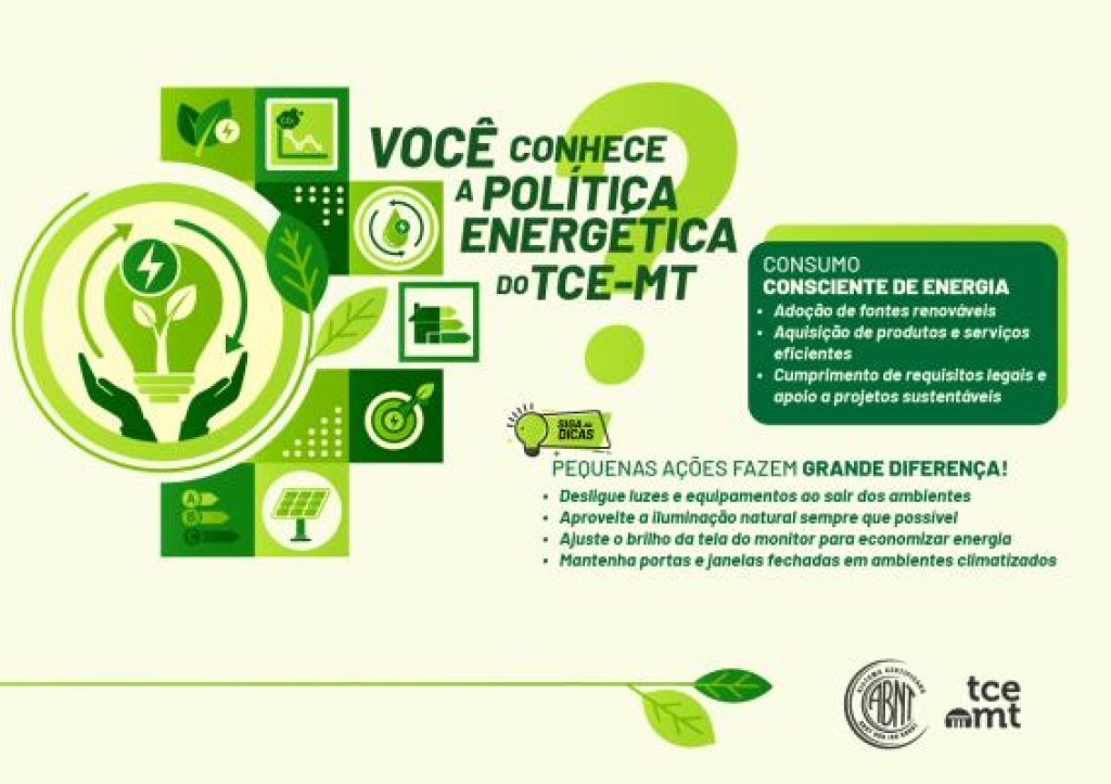 O Tribunal de Contas de Mato Grosso (TCE-MT) reforça a cultura do consumo consciente entre seus servidores com o lançamento de mais uma campanha de conscientização sobre eficiência energética. O trabalho faz parte do compromisso da instituição com a sustentabilidade e a redução dos impactos ambientais de suas atividades.
