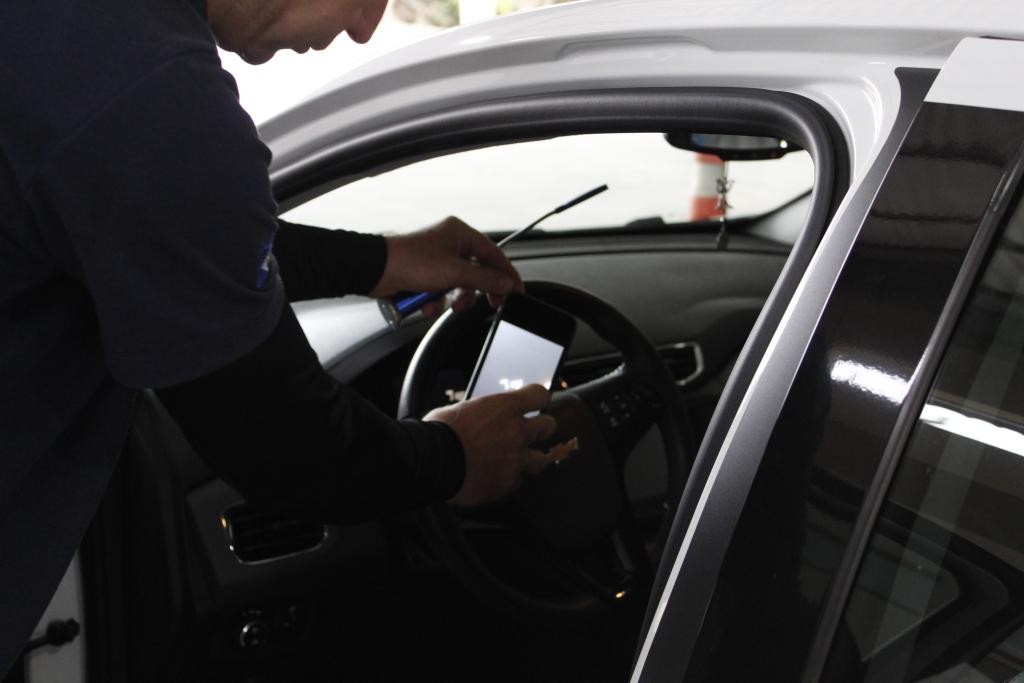 A vistoria do veículo é iniciada com a validação facial, em tempo real, do vistoriador e do condutor do veículo a ser vistoriado. Após, é feita a leitura eletrônica da placa do veículo, do OCR (Reconhecimento de Caractere Óptico) do chassi e do número do motor.