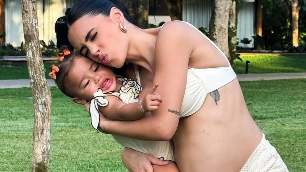 A influenciadora, que já é mãe de Mavie, de 1 ano, espera sua segunda filha com o jogador de futebol Neymar, de 33. Na foto, ela aparece com uma regata preta justinha, que deixou a barriga em evidência.