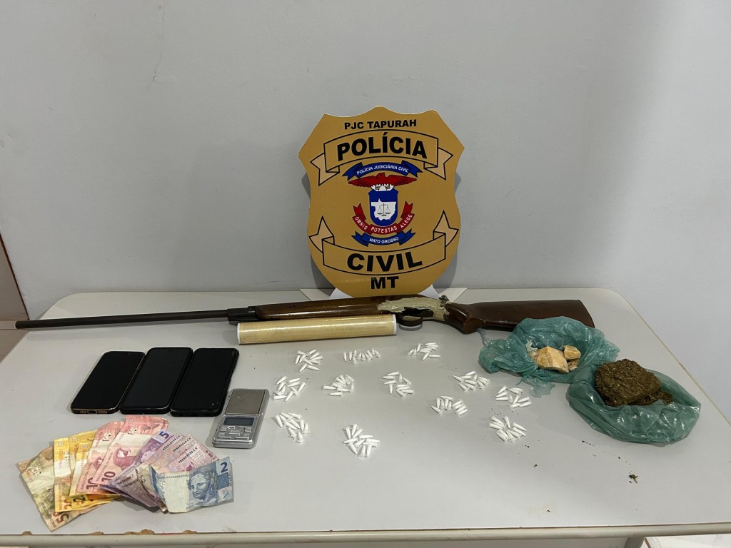 A Polícia Civil desarticulou mais um ponto de venda de drogas e apreendeu 130 porções de entorpecentes, na quarta-feira (11.12), no município de Tapurah (433 km a médio norte de Cuiabá).