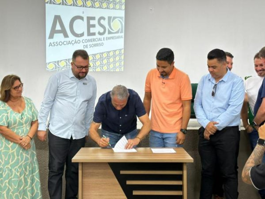 Na manhã desta quinta-feira, 23 de outubro, no auditório da Associação Comercial e Empresarial de Sorriso (ACES), o prefeito Alei Fernandes, o presidente da Câmara Municipal de Sorriso, Rodrigo Matterazzi, e o presidente da ACES, Sávio Júnior Zaniolo, assinaram o convênio que viabiliza o projeto “Natal Luz” na cidade de Sorriso. A parceria prevê o repasse de R$ 2,2 milhões, sendo R$ 1 milhão da Prefeitura – por meio da Secretaria de Cultura – e R$ 1,2 milhões de devolução da Câmara.