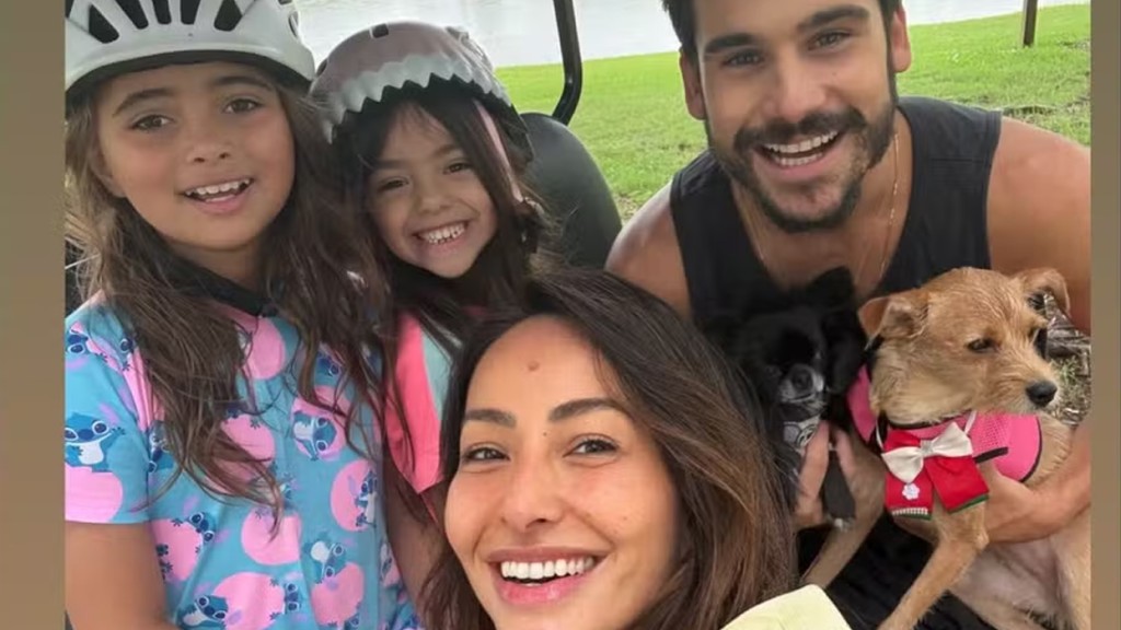 Sabrina Sato, de 43 anos, fez um passeio nesta quinta-feira (26), com o noivo, Nicolas Prattes, de 27, a filha, Zoe, de 6, e a sobrinha, Manuela. Belinha, nova integrante da família também estava presente.